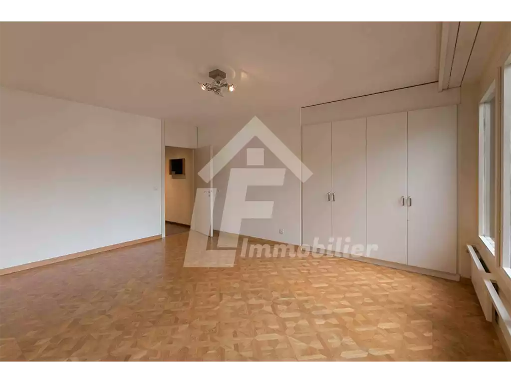 - Une pièce à vivre lumineuse avec des armoires encastrées.